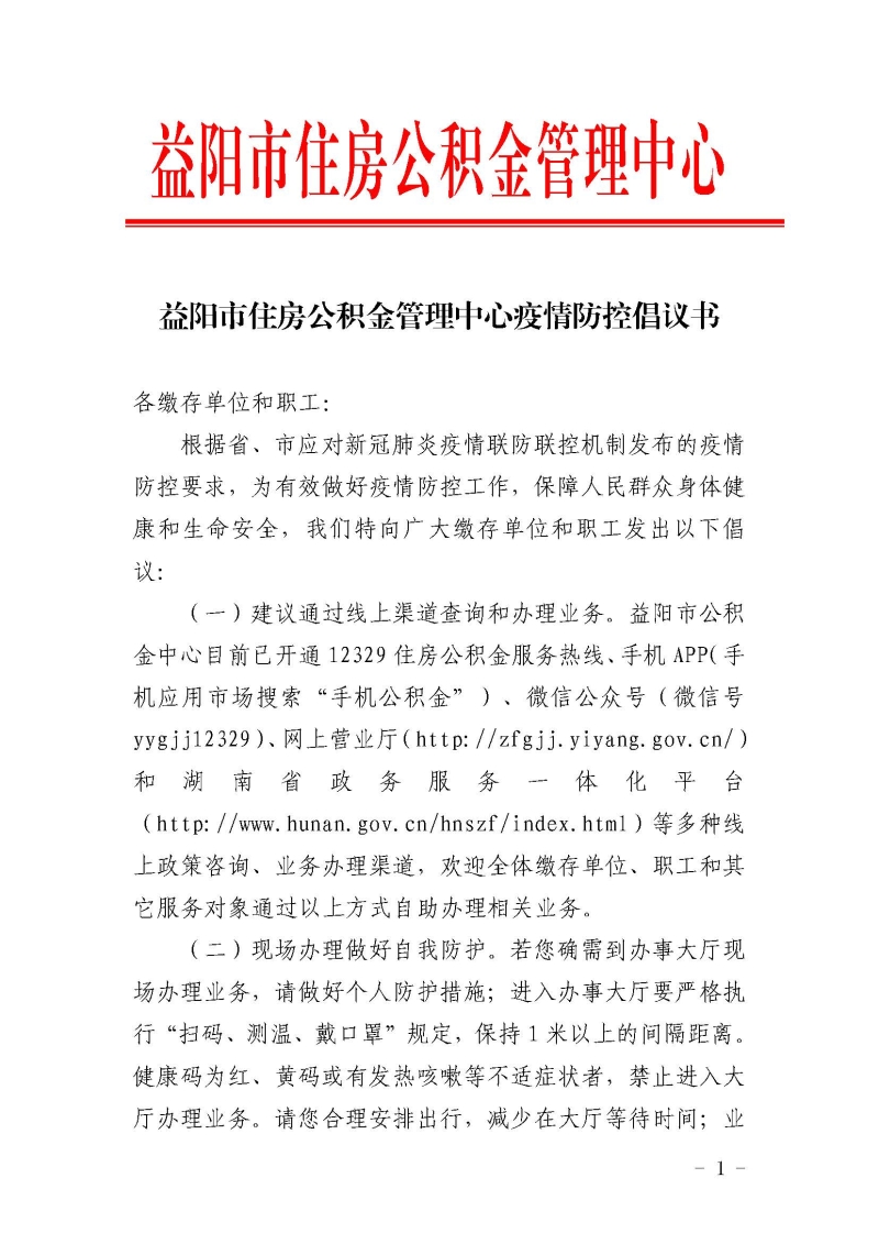 益阳市住房公积金管理中心疫情防控倡议书